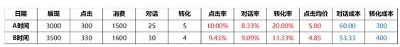 是的,B時間肯定采用了放量(擴(kuò)大匹配模式)、降價的操作,因為展現(xiàn)、點擊、對話增加了,均價下來了。