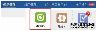 6.使用看排名工具:在鳳巢賬戶里面推廣管理旁邊有個(gè)便捷管理-看排名工具,可以查看PC和移動端的部分重點(diǎn)詞的排名情況(比較接近實(shí)時(shí)排名)。但最多只能關(guān)注150個(gè)重點(diǎn)詞,局限性比較大,排名更新頻率也沒那么快。